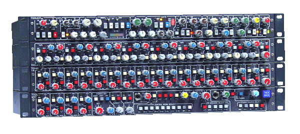 While the three Toolmix devices (16 x 2 and 8 x 2 mixer rack units and control room/monitor control rack unit), can be configured and used in any way the user wishes, they were originally designed as a complete back-end mixer for a DAW system. As usual, our modular approach resulted in a sensibly engineered system that have multiple applications, and almost infinite expandabilitiy. The ToolMst-Dyn (Stereo Compressor and Limiter) and ToolMst-EQ (mono EQ unit with 8 fully parametric bands high-pass and low-pass filters, high and low shelf filters) complete the range of theTool audio devices. All of these units can be used together to create a front-end, and/or back-end mixer system with the same power supply, or they can be used individually as stand-alone devices.